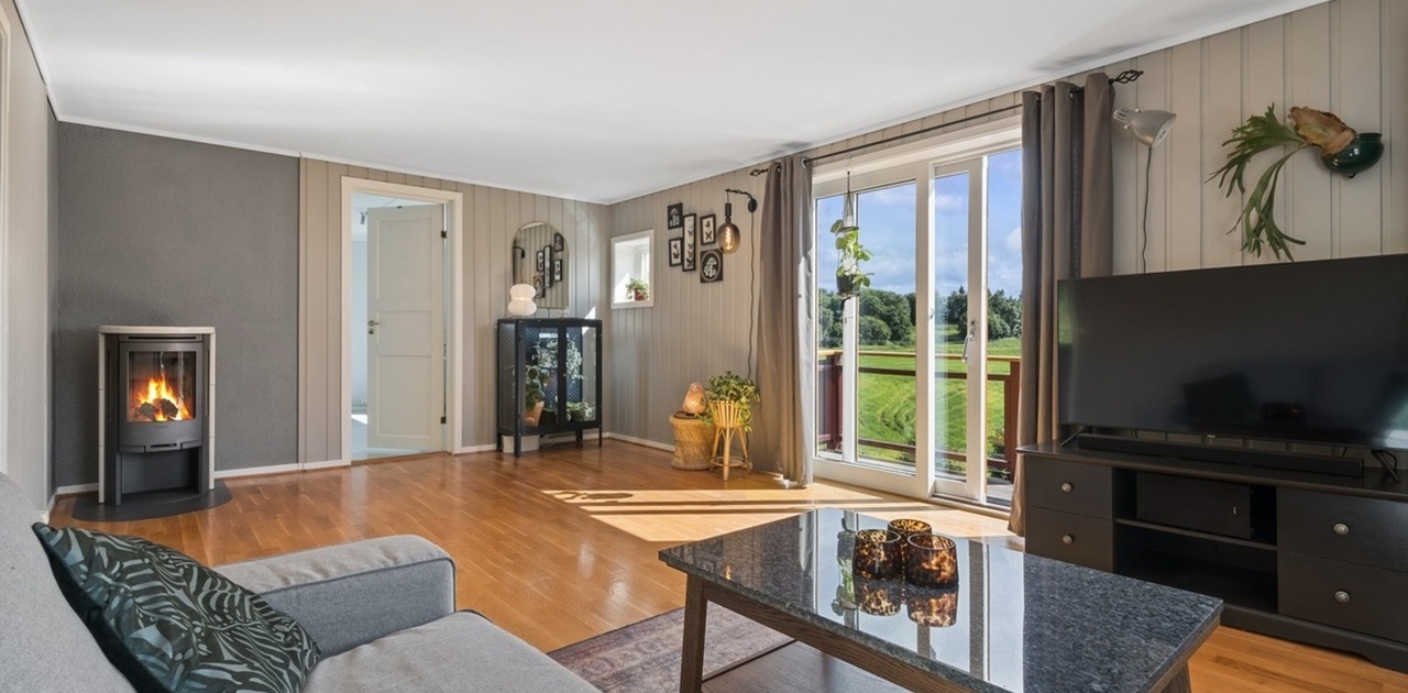 • Store skyvedører i stuen gir rikelig med naturlig lys