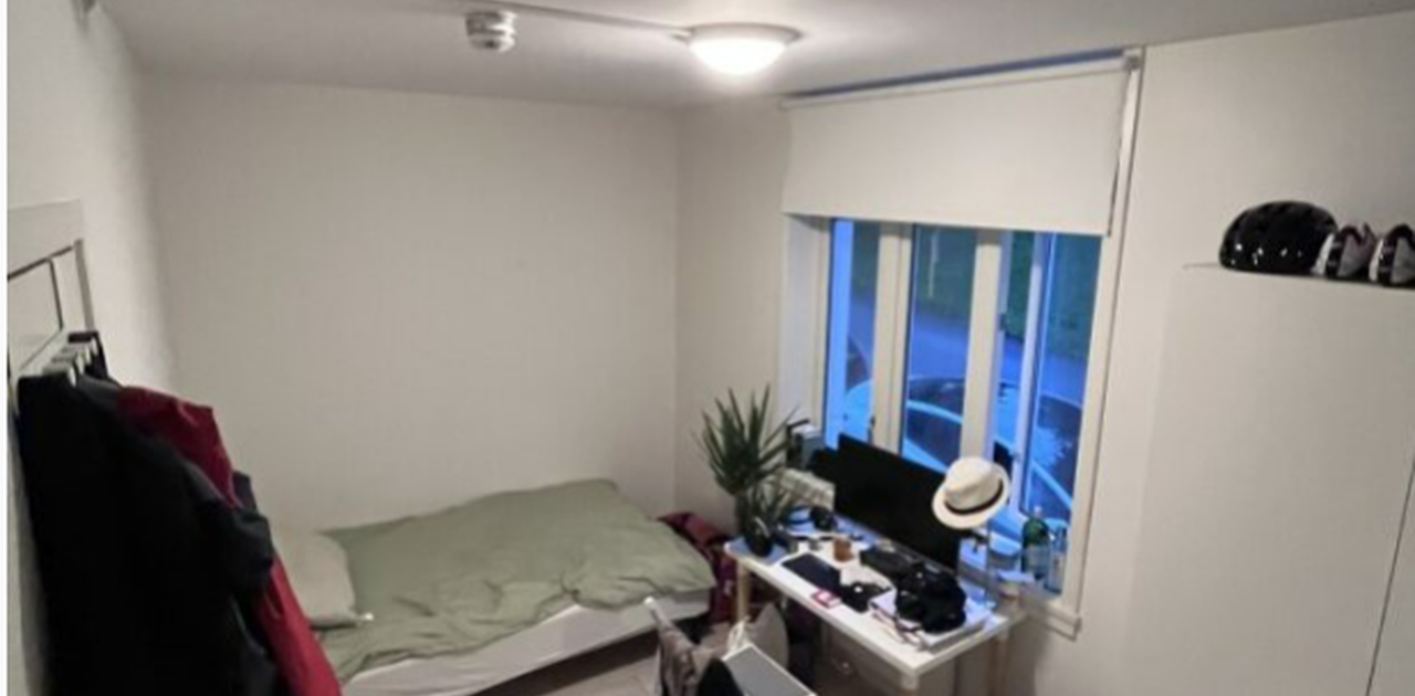 Rommet har utsikt mot Realfagsbygget ved UiB, og det er omtrent ett minutts gange til Bybanen.