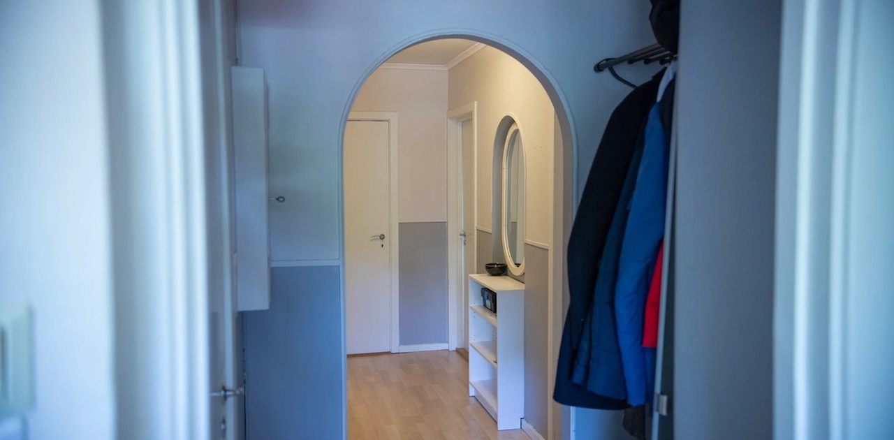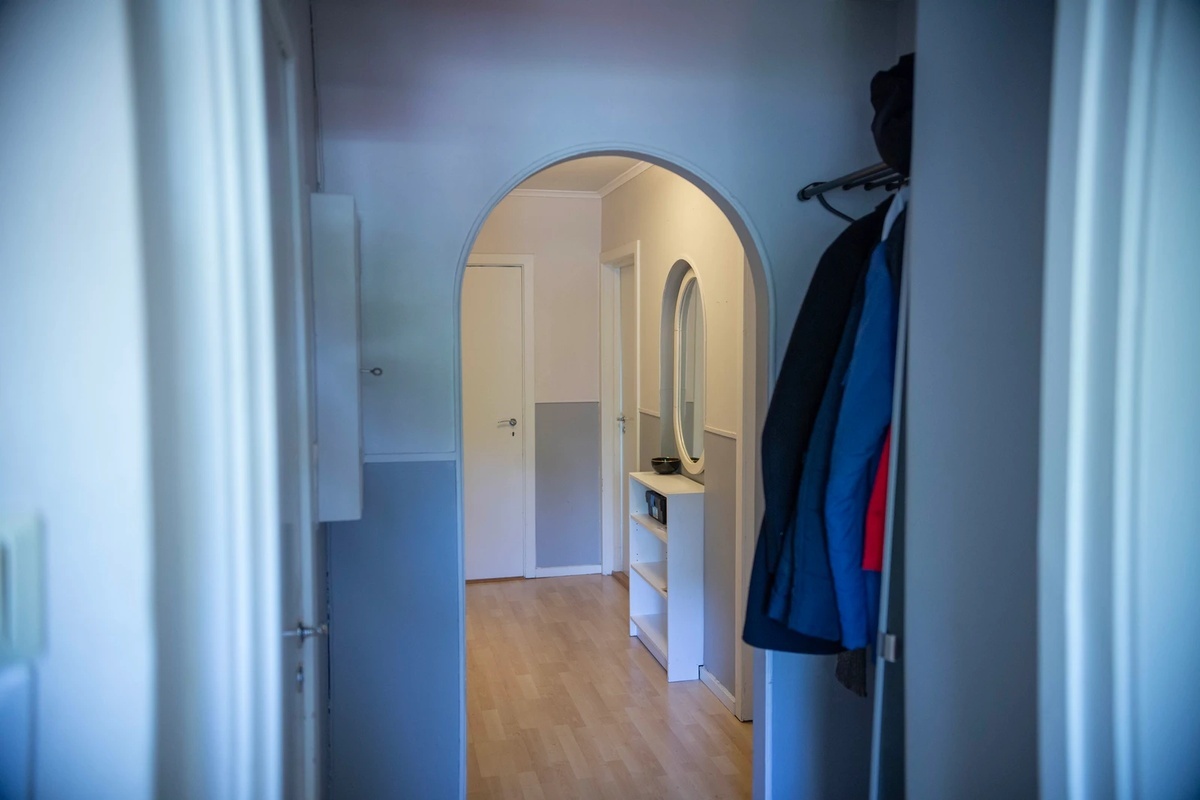 Leiligheten deler du med to andre, som har hvert sitt rom. Dere deler kjøkken, bad og gang. Thomas (23) jobber som fotograf, og Leo (25) er freelancer. Stille og rolig bofelleskap.