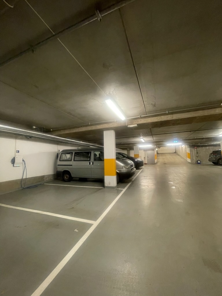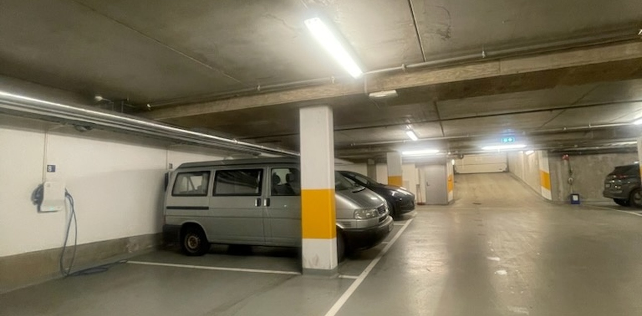 Flott pplass med lader i oppvarmet parkeringskjeller til langtidsleie