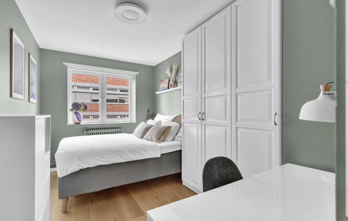 Leiligheten er på 55kvm +4kvm bod. Leiligheten et i 4.etasje, men er bare to etasjer opp fra inngangsparti. Alt er nyoppusset senest fra 2019, og vi har også malt alle veger og pusset opp hele badet i vår. Rommet som leies ut er på ca. 12kvm, og leies ut delvis møblert med skap (PAX innredning fra IKEA). Det er også mulighet for at pult og kommode står igjen. Vi har vaskemaskin på badet, og det er også tilgang til vaskemaskin og tørketrommel i fellesvaskeri ved bakgården. Soverommene og stue har Philips hue lys, som gir mulighet for å styre lys gjennom telefon. Stuen er også utstyrt med helt ny smart-tv. Videre har vi også en fin bakgård med sittegrupper og steinovn.