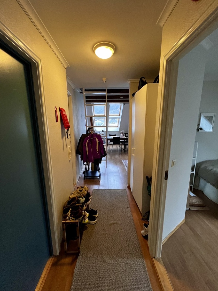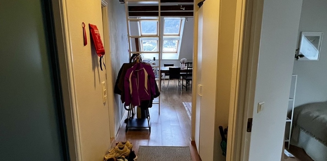 Eg leiger ut rommet mitt i februar. Rommet er ein del av eit kollektiv der du har ditt eige rom, men deler bad, kjøkken og stue med to veldig hyggelige jenter. Soverommet som leigast ut er stort og romsleg. Leilegheita ligg midt i Bergen sentrum, i trappeoppgangen til Johannes kyrkja, i 4. etasje. Til tross for den sentrale beliggenheita er det som regel lite støy på kveldstid.