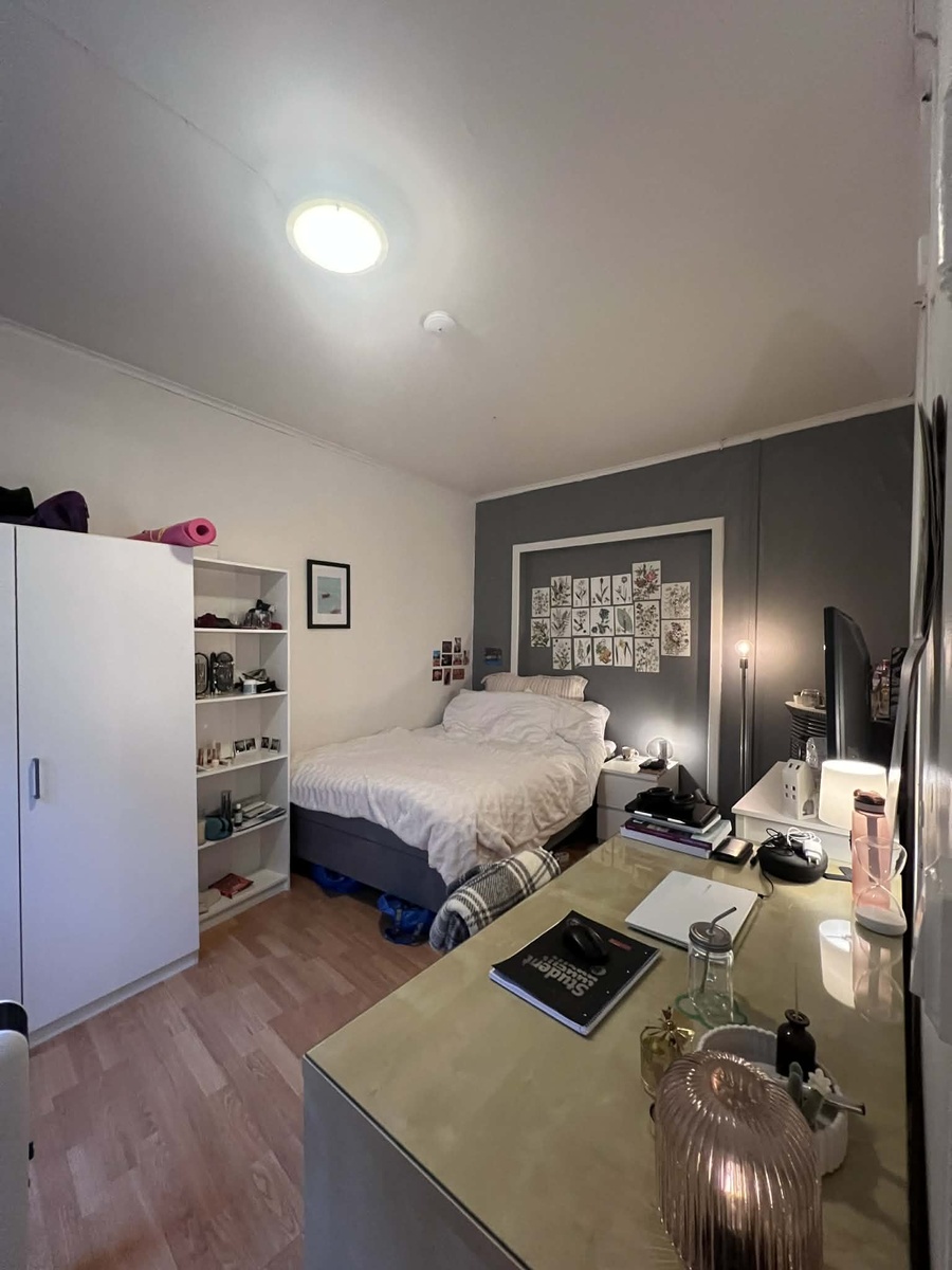 Jeg framleier mitt rom i en 100 kvm, 4-romsleilighet for vårsemesteret siden jeg drar på utveksling. Rommet kan leies fra desember/januar til juni/juli. Leiligheten er fullt møblert. Rommet inkluderer seng, pult m/stol, klesskap, kommode, TV, nattbord, hylle og varmovn. Rommet er omtrent 13 kvm. Ellers har leiligheten en stor stue, et romslig kjøkken og bad.