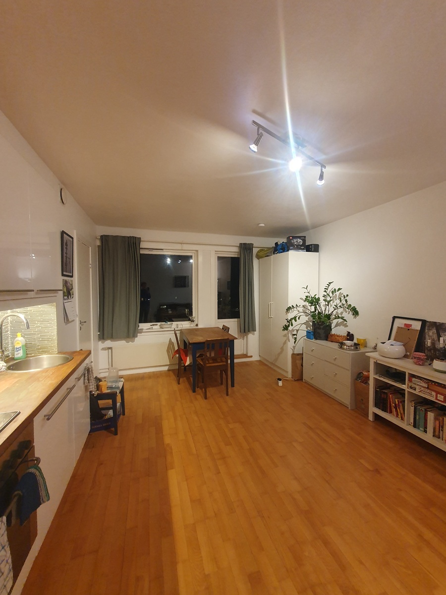 Ser etter 1-2 personer som ønsker å leie en leilighet i et koselig og rolig område rett ved marka. Kort vei til Kringsjå t-bane, bussholdeplass og matbutikker. Soverommet er en sovealkove, men med plass til dobbeltseng. Stue og kjøkken i samme rom. Moderne gang og bad. Det følger med en liten vaskemaskin på badet, men beboer(e) har også tilgang til et felles vaskeri i kjelleren. I kjelleren finnes det også to tilhørende boder, en større og en mindre. Sykkelbod og smørebod er også å finne her. Leiligheten har en liten østvendt balkong på 2 kvm.