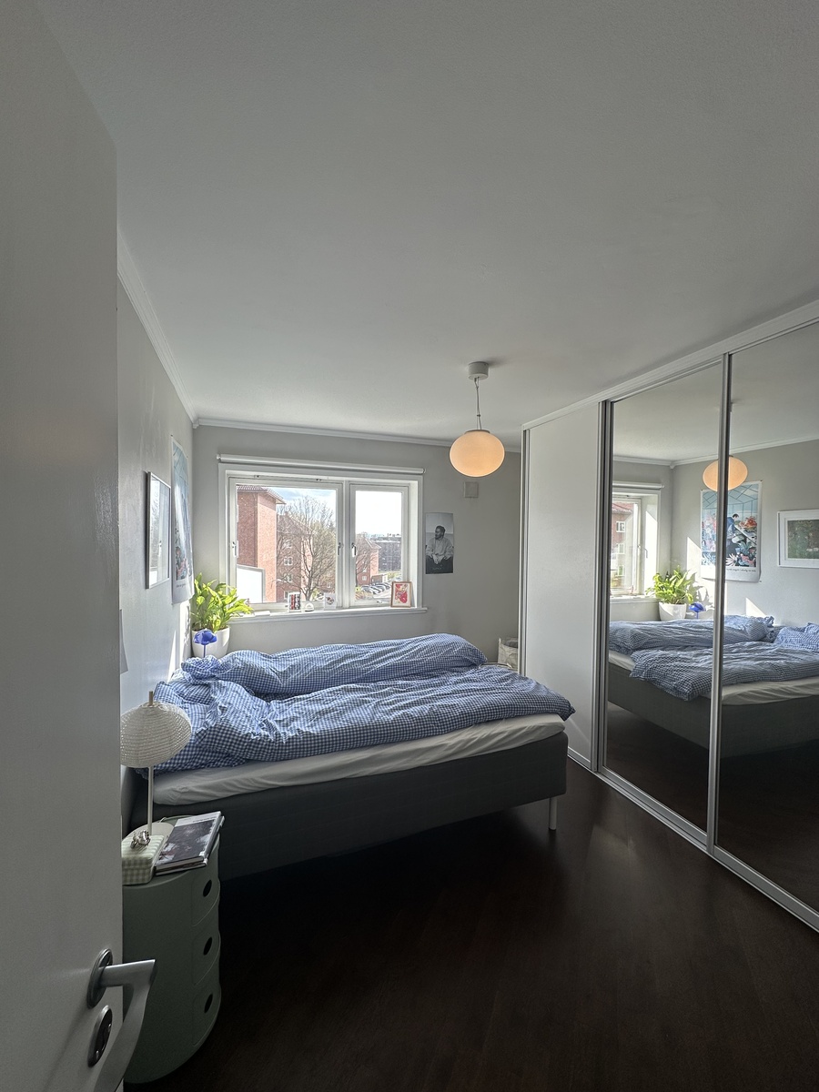 Leiligheten ligger beleilig til i en høy 1. etasje. Det betyr at tilkomsten er enkel, men at man heller ikke opplever særlig innsyn i leiligheten. I tillegg ligger boligblokken på en høyde, som gir en nydelig utsikt både fra vinduer og balkong. Når det gjelder offentlig transport, er Sinsen T-bane bare noen få minutter unna i gange, i tillegg til at buss og trikk går fra holdeplasser i nærheten. Leie av leiligheten gir også tilgang til en felles bod for oppgangen hvor sykler kan oppbevares ved ønske. Leiligheten leies ut delvis møblert, der man kan bli enige i fellesskap om hva man ønsker av inventar.