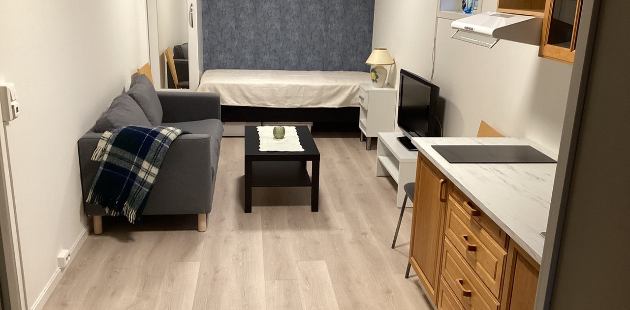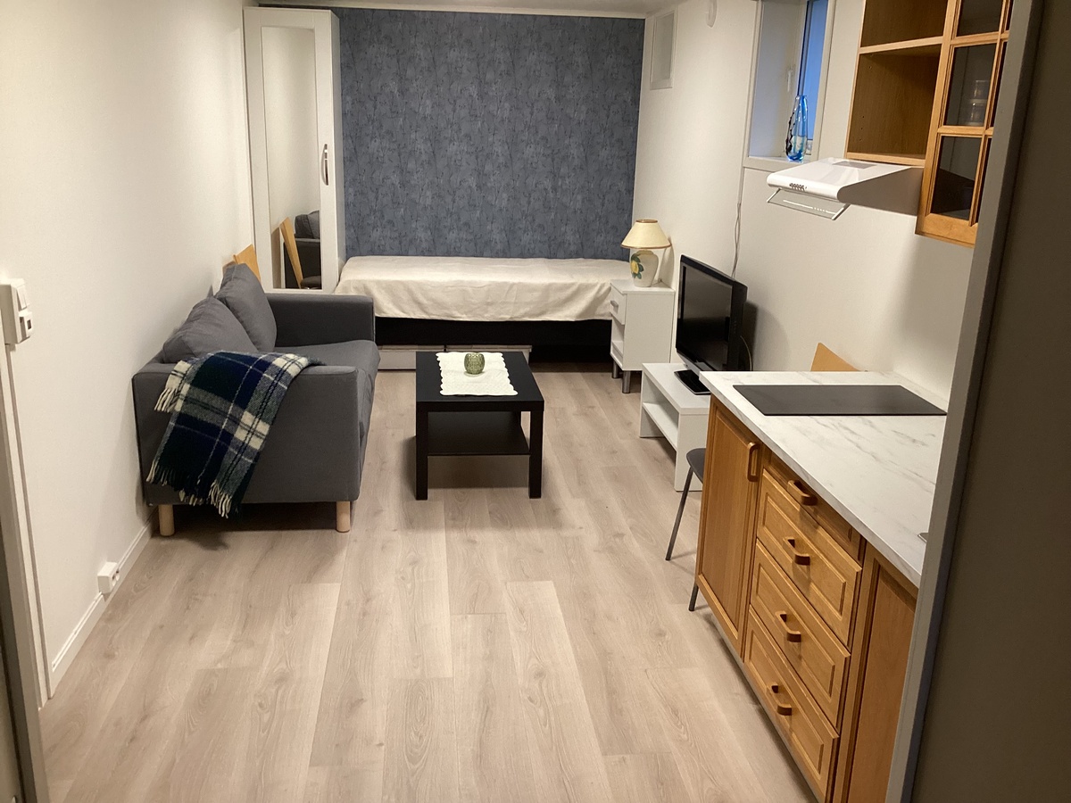 Hybelen ligger i sokkel. Egen inngang. Eget bad. Møblert som vist på bildet.