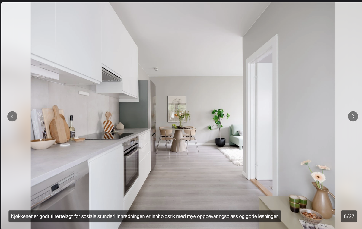 Leiligheten er lys, moderne og i svært god stand. Stue, kjøkken og spisestue ligger samlet i et stort og åpent fellesrom som gjør det enkelt å både slappe av og lage middag sammen. Her finner du også en koselig balkong. Hele leiligheten er fullt møblert og utstyrt med alt du trenger i hverdagen – det er bare å flytte rett inn. Badet er utstyrt med vaskemaskin.