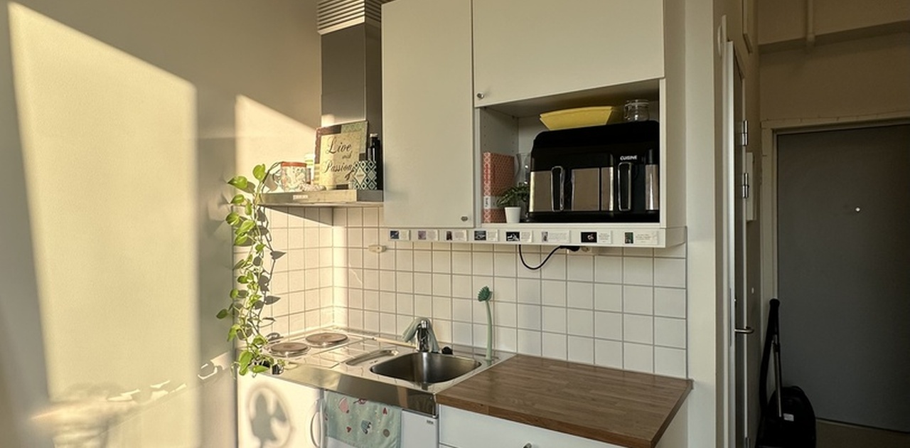 The accommodation includes white goods, electricity, internet and furniture. There is no oven here, but I have an air fryer that can be used. There is a shared laundry and a shared roof terrace with an incredibly nice view over Oslo.