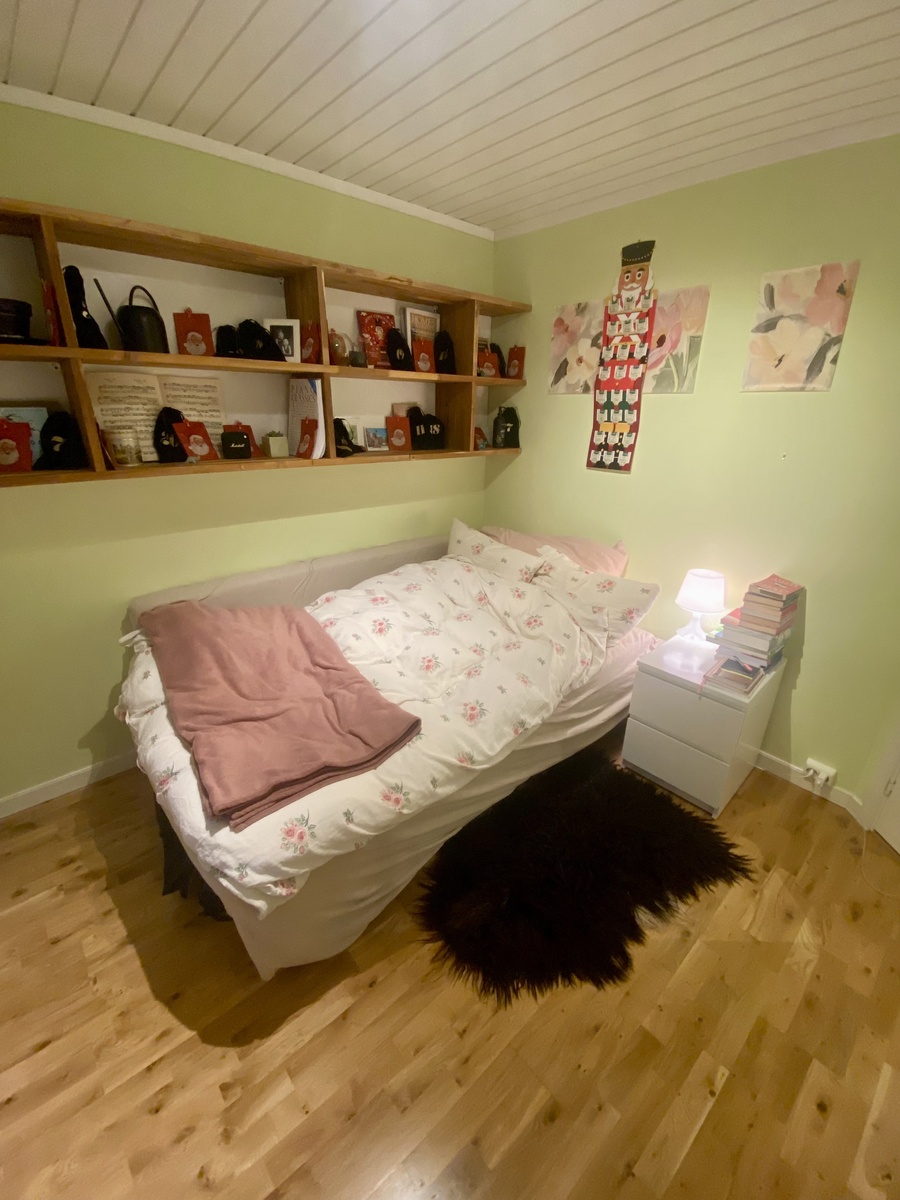 Rommet mitt er ledig for leie, ettersom jeg skal på utveksling. Det er 1 av 3 rom i eget koselig hus/bofellesskap med to andre leietakere. Ser etter en ung person i arbeid eller student. Huset er bygget i 2015, er på ca 100 m2, møblert og med alle hvitevarer, vaskemaskin, mikro og støvsuger. Strøm, vann, internett og tv-signaler inkludert. Leieperioden kan forlenges hvis ønskelig.