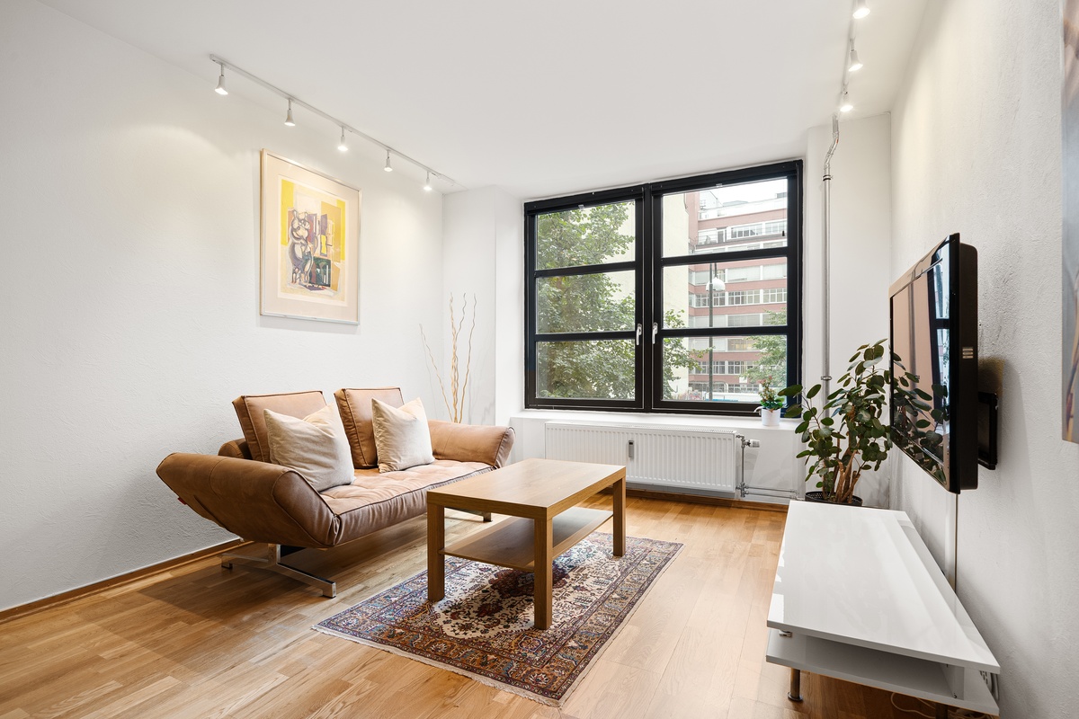 Her får du en romslig stue-/kjøkkenløsning, to sovealkover og et moderne bad med varmekabler og opplegg for vaskemaskin. Leiligheten ligger i 2. etasje i en stor bygård like ved Akerselva, med heis opp til en av Oslos flotteste felles takterrasser med gode solforhold og utsikt.