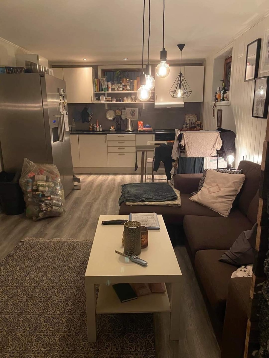 Utrolig koselig kjellerleilighet med veldig hyggelige utleiere oppe, fint uteområde med basseng, som vi får lov til å bruke en gang iblant hvis vi spør og utleier oppe ikke skal bruke det 🤯 Rommet har enormt med oppbevaringsplass (inkludert under senga), noe som er utrolig deilig i forhold til størrelsen på rommet. Leiligheten er møblert, og vi har en flott regnfallsdusj 🚿