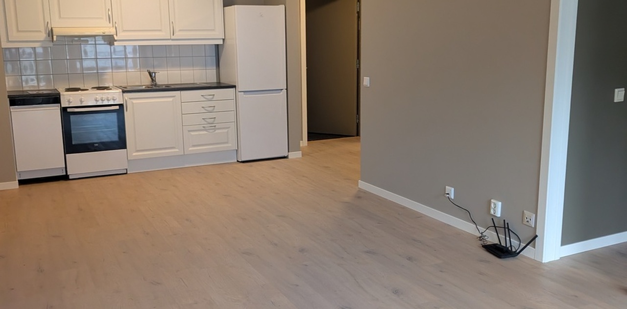 Innhold: Åpen stue/kjøkkenløsning, 2 soverom, gang og bad. Det medfølger hvitevarer og vaskemaskin. Vaskemaskin vil ikke bli erstattet eller reparert om den blir ødelagt. Det medfølger garderobeløsning i gang.