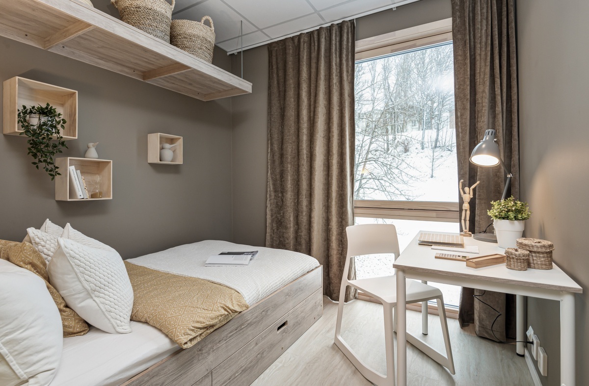 Vi vektlegger gode boliger og attraktive fellesarealer for å skape et hyggelig sosialt miljø og gode studentfasiliteter.