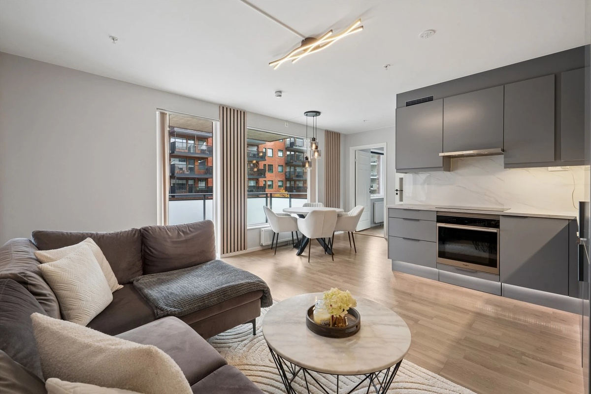 Moderne 3 roms leilighet fra år 2022 har garasje, balkong, bod i kjelleren og sentralt i Lørenskog