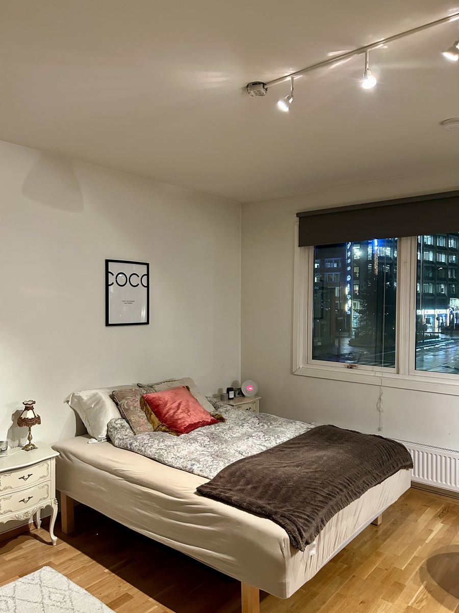 Rommet er ikke møblert, men klesskapet medfølger. Sengen kan også medfølge dersom det er ønskelig.