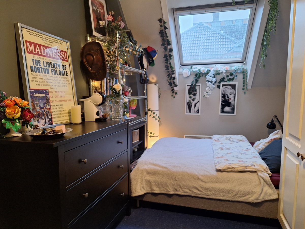 Kollektivet består av jenter i alder 20 til 25. Jeg fremleier rommet mitt på 10 kvm som ligger i tredje etasje på Øya, rett ved legevakta. Området er stille og rolig med gangavstand til både Gløshaugen og Kalvskinnet. Rommet er en del av en leilighet med 4 andre jenter hvor en deler kjøkken og to bad. Det er samt vaskekjeller delt med resten av bygget med 3 leiligheter samlet.