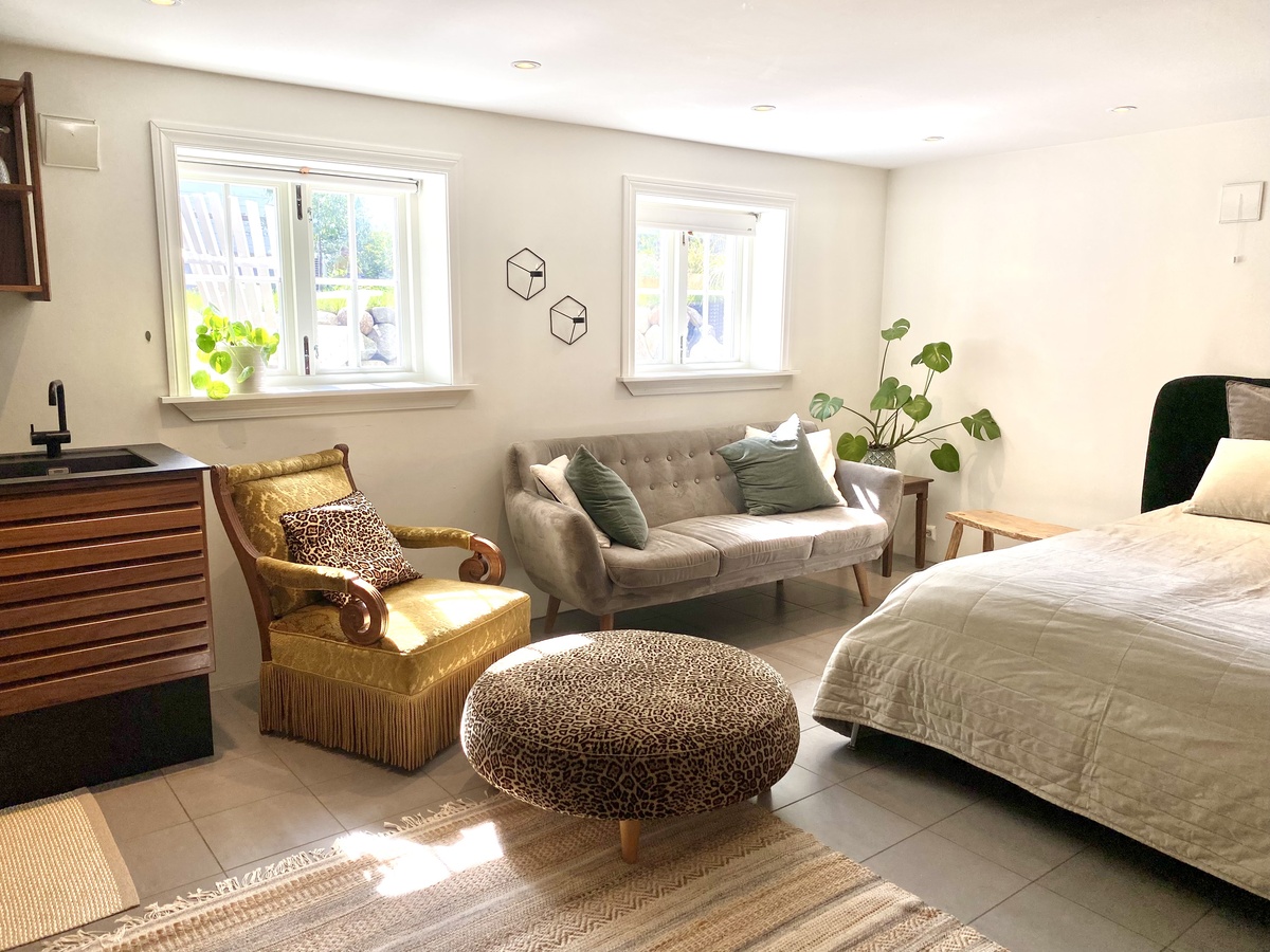 Leiligheten ligger i et fredelig område med kort veg til turløyper og strender, og kun 12 minutters gange til buss/togstasjonen, og 15 min til sentrum. Dette er en romslig og lys underetasje med egen inngang, varmekabler i gang, bad og hovedrom, ny kjøkkeninnredning (Unoform), moderne bad og full møblering. Tilgang til hage og gratis parkering. Strøm, internett og kommunale avgifter inkludert. Ellers i huset bor vi- en hyggelig familie på fire.