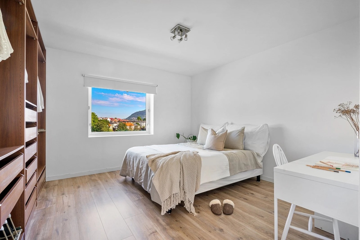 Leiligheten ligger med gåavstand til Wergeland bybanestopp, Rema 1000 (søndagsåpen), Sats, og Høgskulen på Vestlandet (HVL).