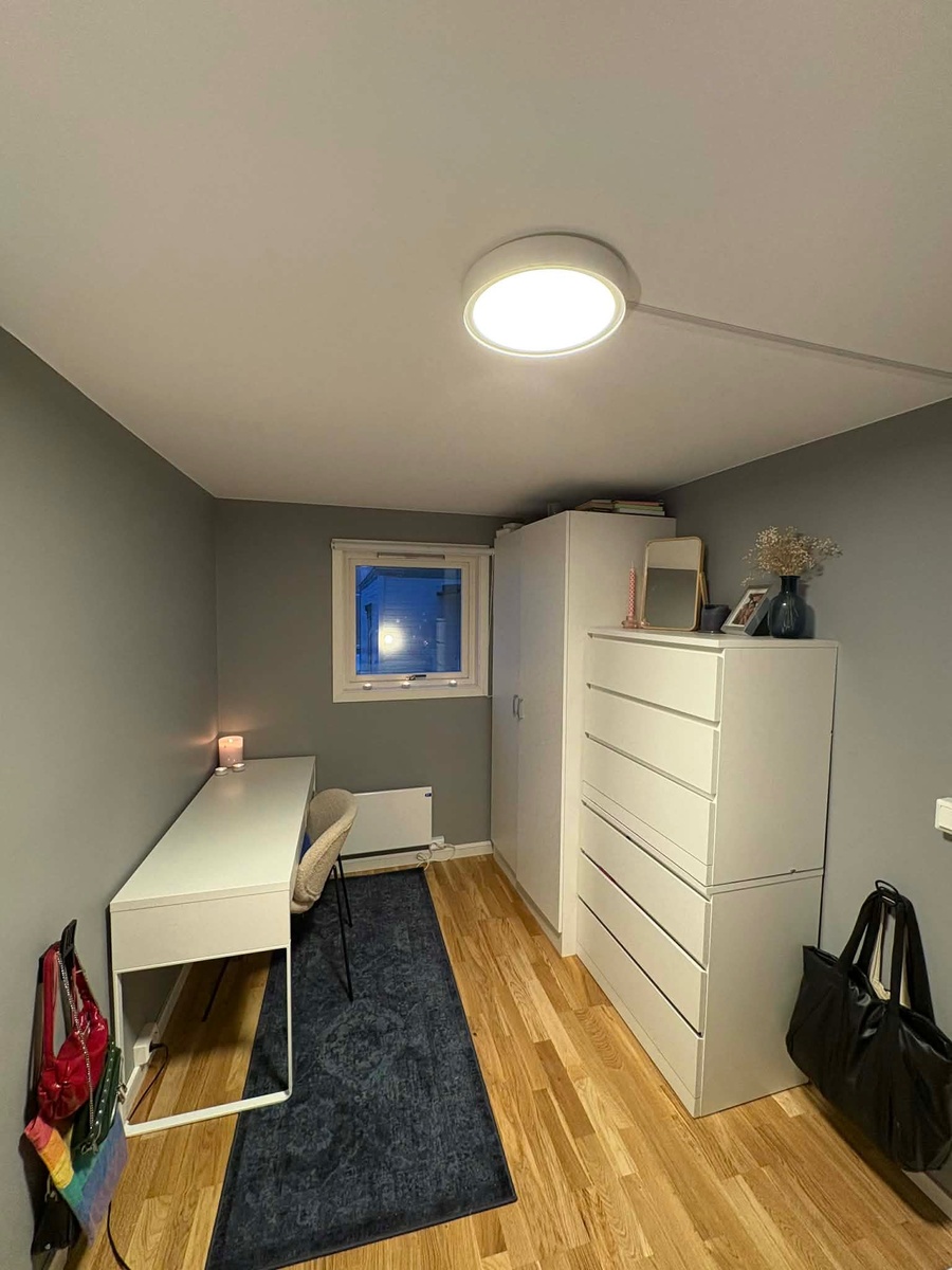 Rommet ligger litt for seg selv i leiligheten, bak kjøkkenet. Det er romslig og har plass til mye:-)