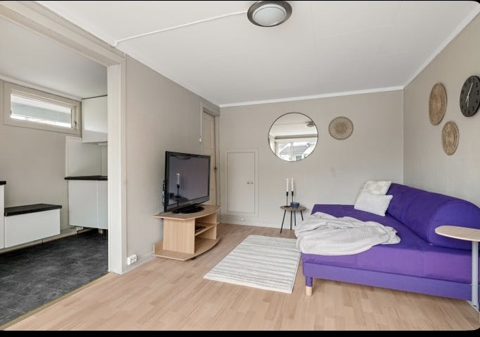 Leiligheten består av en åpen stue/soverom- og kjøkkenløsning + bad.