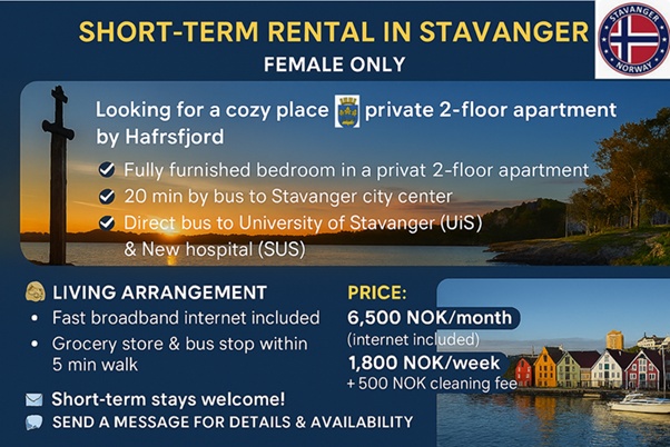 Looking for a cozy place near Stavanger for business or studies?