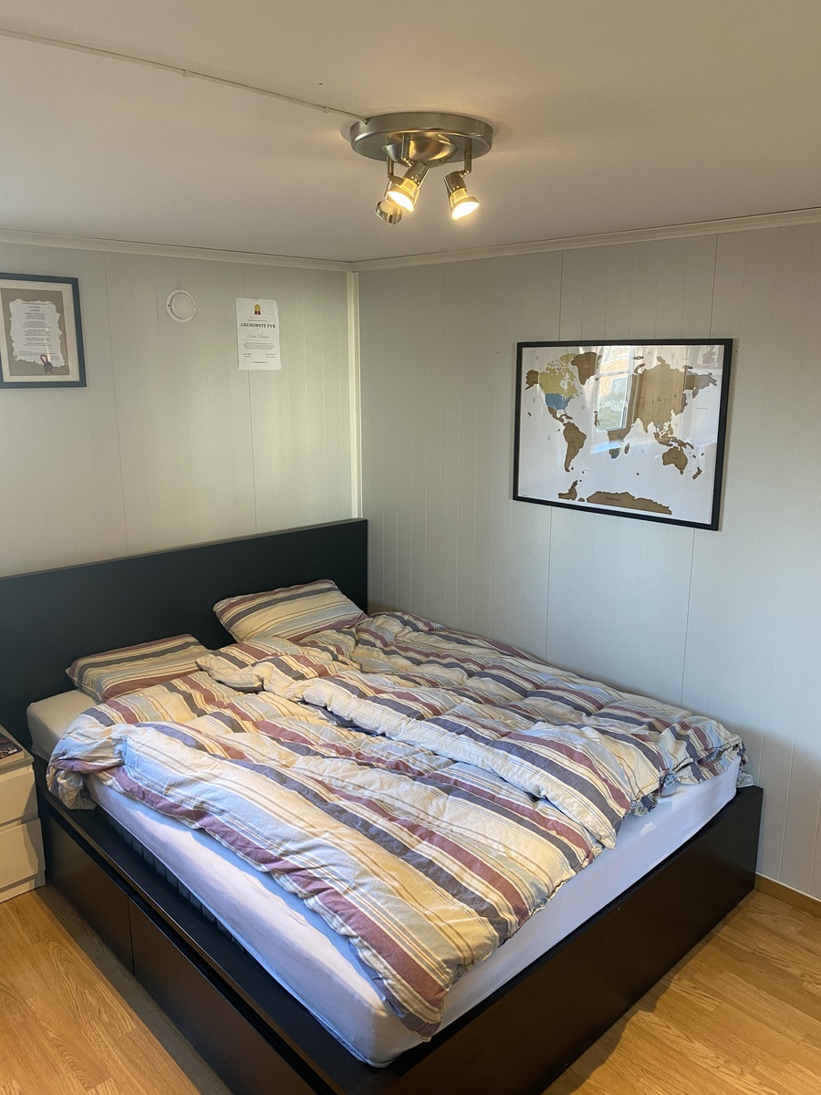 Felles kjøkken og stue med oppvaskmaskin, sofa, spisebord og TV. Et fullverdig bad + ekstra toalett. Vaskerom med vaskemaskin og tørketrommel.