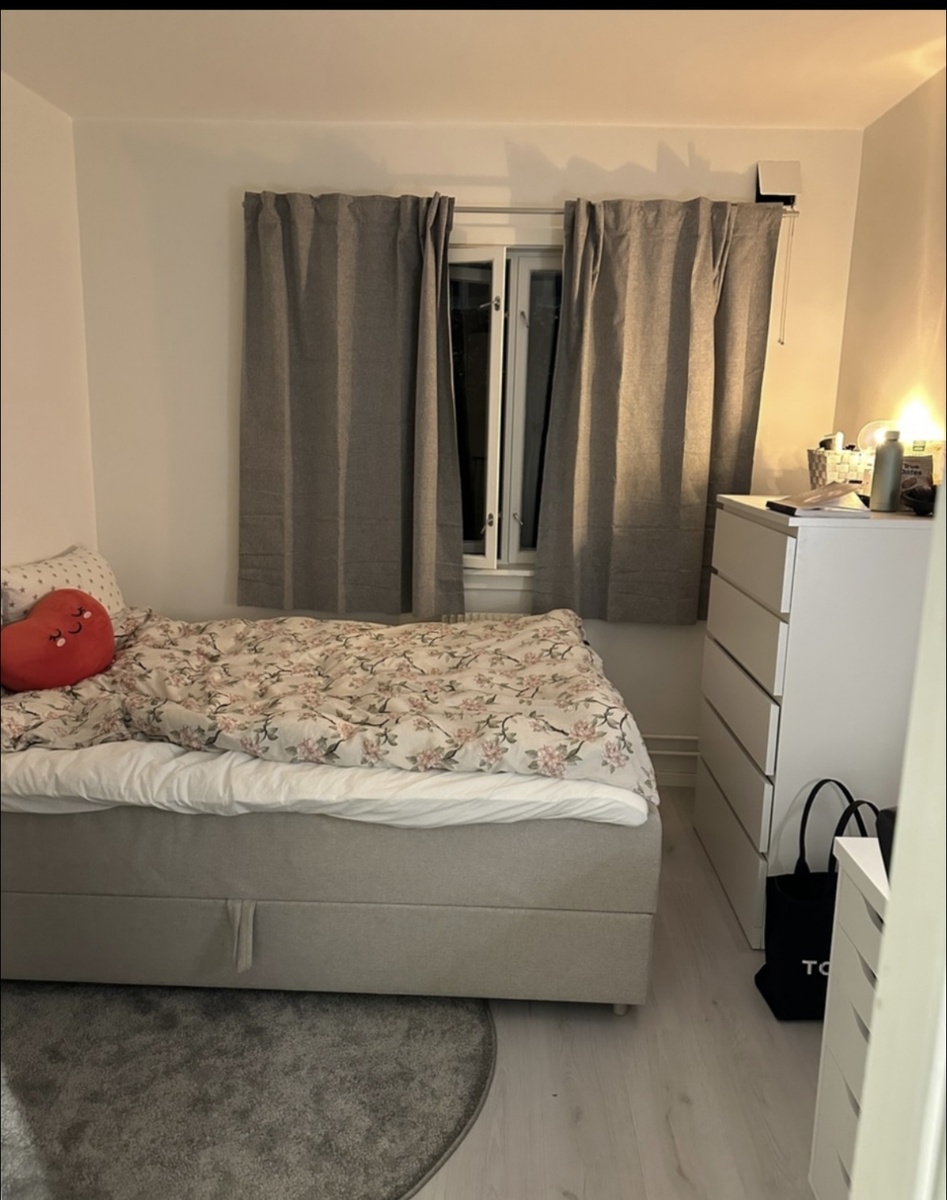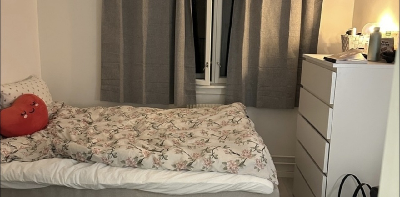 Fra 1. januar leies dette fine, store og lyse rommet ute i en jenteleilighet bare 15 minutter fra Oslo S. Her bor vi en hyggelig jentegjeng hvor Joker, T-Bane og kjøpesenter er et steinkast unna. Visning og kontrakter skjer fortløpende, så ta kontakt så snart som mulig hvis du er interessert.