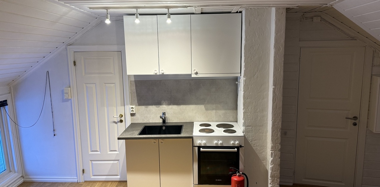 - Soverom, stue og kjøkken i ett.