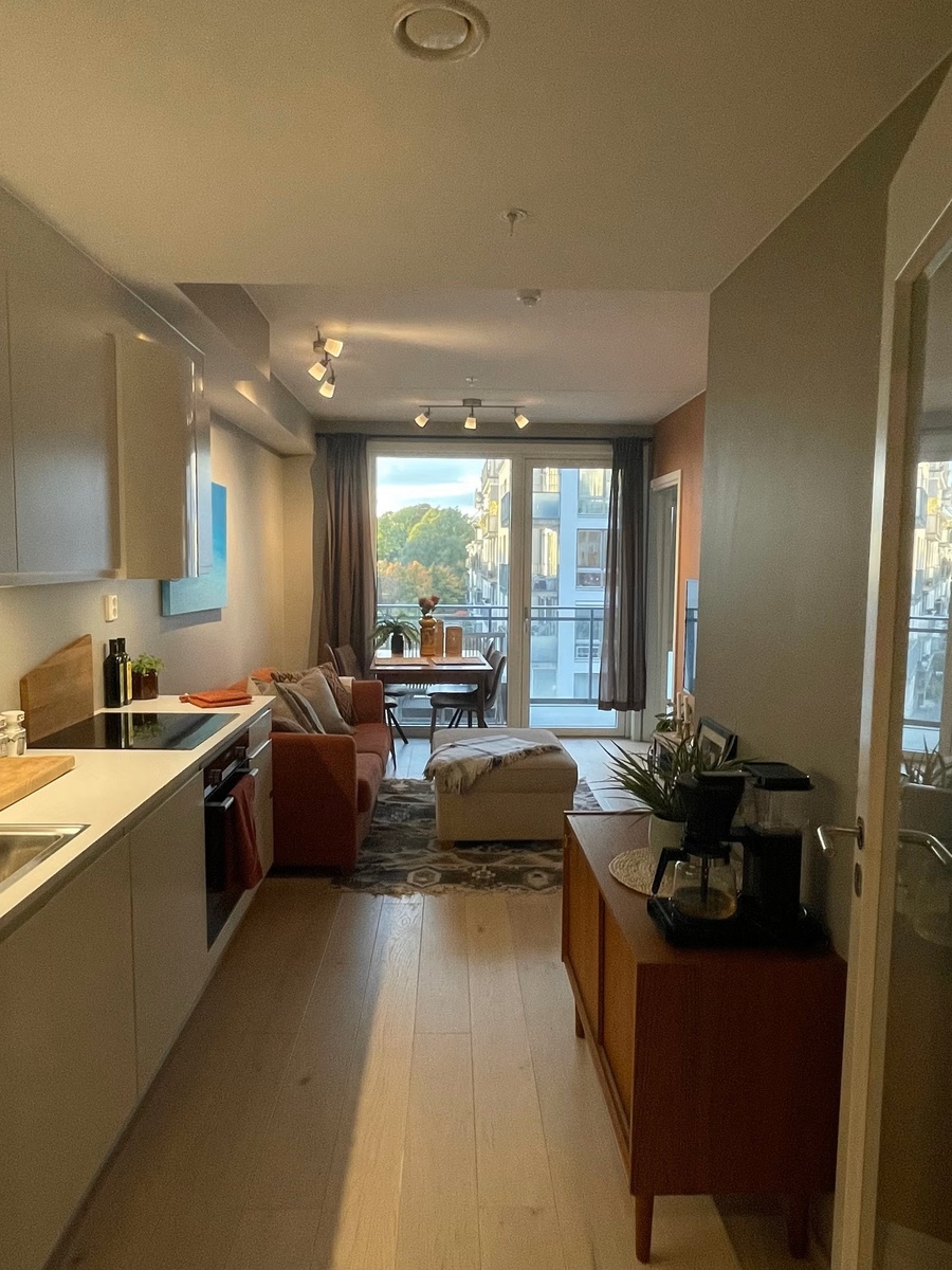Leiligheten har en god standard og har en arealeffektiv planløsning. Leiligheten byr på en entre, et gjennomgående kjøkken med hvitevarer inkludert, samt en innbydende stue. 1 soverom og flislagt bad med vaskemaskin og tørketrommel. Det er vannbåren varme i gang, stue og bad. Leiligheten leies ut møbelert. Denne perlen er skjult i det moderne Myrenskvartalet fra 2020, med en idyllisk grønn bakgård og en sjarmerende "utsikt" mot Akerselva.