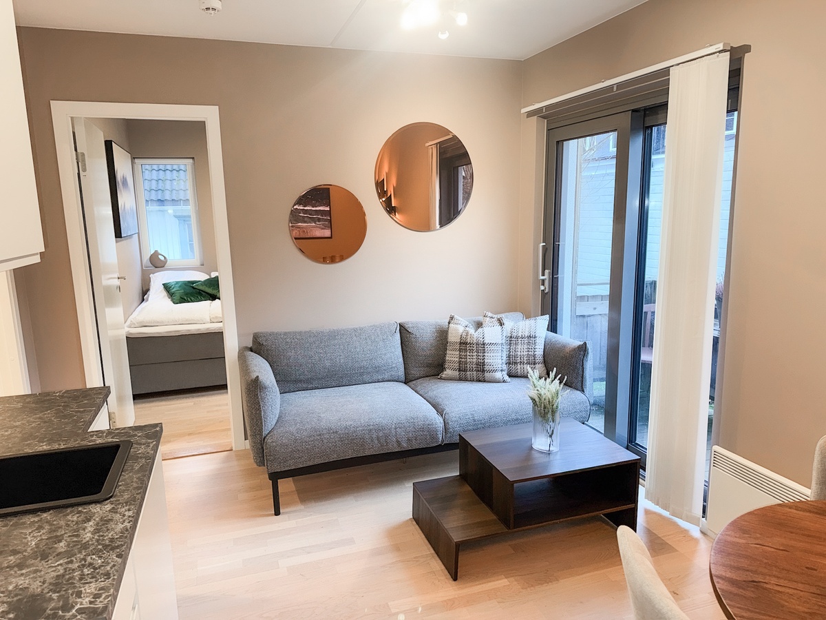 Fullt møblert, med alt nødvendig utstyr på plass. Usedvanlig effektiv leilighet for størrelsen, med gode løsninger for oppbevaring.