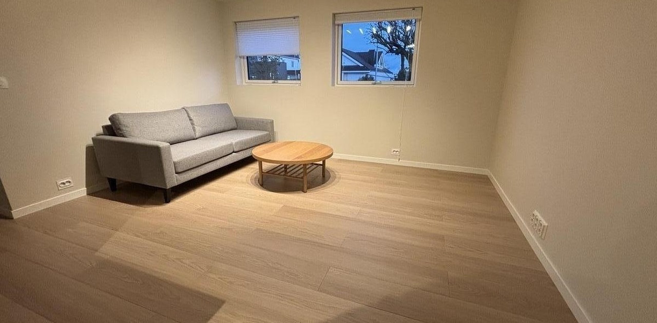 Total renovert leilighet fra 2025 i enebolig på Hundvåg med strøm, internett og møbler inkludert. Leiligheten ligger i første etasje og har egen adskilt inngang på baksiden av huset. Leiligheten ble etablert i 2025 og fremstår med gjennomgående høy standard og moderne utforming. Alle vinduer er nye (2025). Leiligheten har aldri vært bebodd.