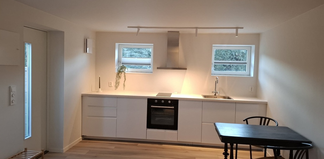 35 m2 lys nyoppusset hybel med vannbåren varme i gulv og balansert ventilasjon. Eget lite vaskerom. Kort vei til offentlig kommunikasjon (trikk og tog innen 400 meter) og Sæter torg.