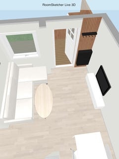 Hybelen er lys, og moderne med innslag av spiler og tre-detaljer. Kjøkkenet er utstyrt med kjøleskap, oppvaskmaskin, stekeovn, ventilator, vask og kombi vaskemaskin/tørketrommel.