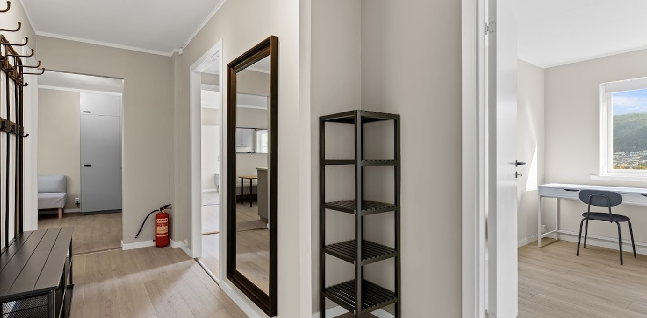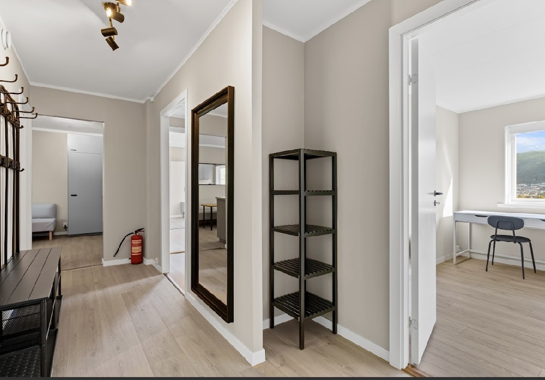 Leiligheten inneholder 4 soverom på omtrent 7, 9, 10 og 13 kvm (ikke nøyaktige mål). Åpen kjøkken-stue løsning og romslig gang. Strøm og wifi er inkludert i husleien, så du slipper å forholde deg til ekstra utgifter eller uforutsette kostnader.