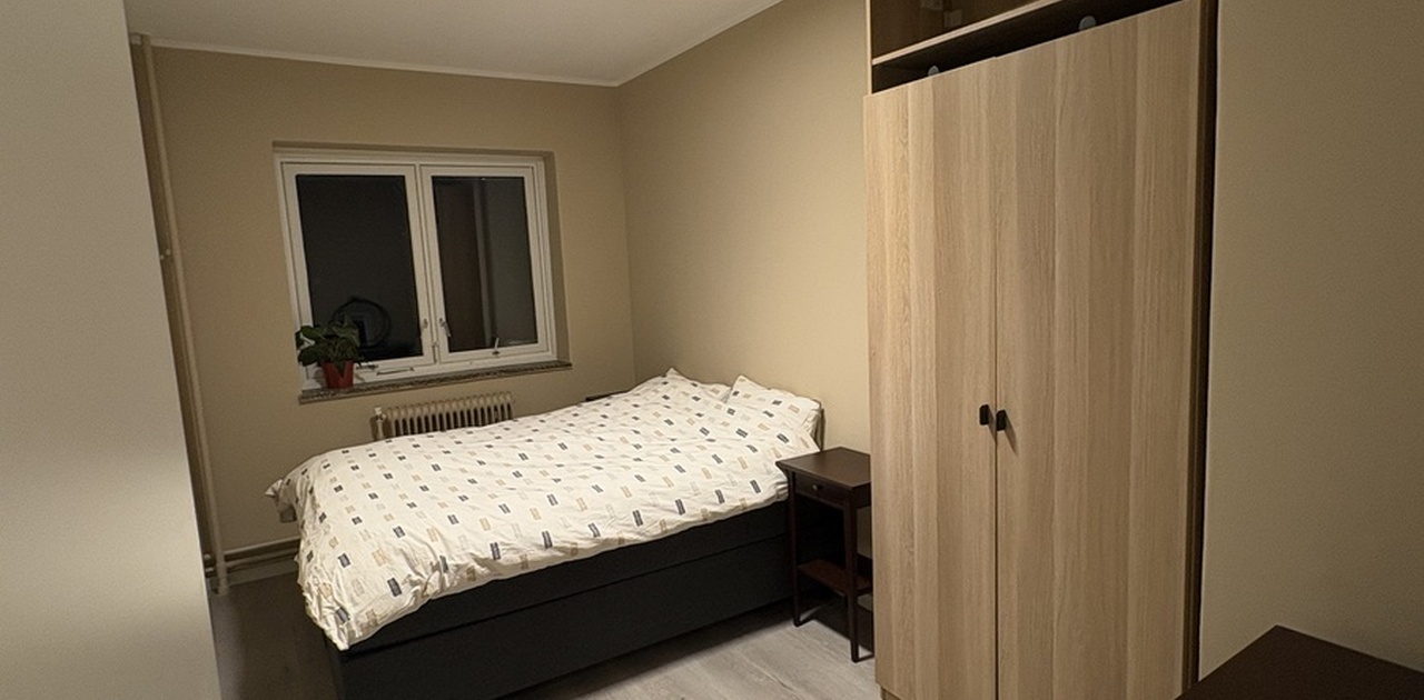 Soverommet er ca. 10,5 kvm og leies ut møblert med seng, kommode og garderobe. Leiligheten er lys, moderne og godt vedlikeholdt, og du vil dele den med meg.