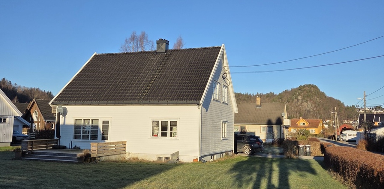 Huset har to etasjer med separate boenheter. Nedre etasje er ledig for utleie. Stor dobbelgarasje, stor hage og plen. Sentralt på Mosby nær skole, butikk, buss hver 30 min til Kristansand sentrum, ca 15-20 minutter.