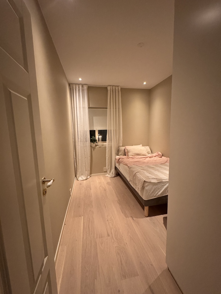 Jeg ønsker å leie ut det andre soverommet i min leilighet på Grünerløkka. Leiligheten er nyrenovert, består av to soverom og ligger på Grünerløkka med Botanisk hage som nærmeste nabo. Soverommet er av god størrelse, har mye naturlig lys, fin utsikt og vender mot en rolig bakgård. Leiligheten har et preg av skandinavisk stil og ligger svært sentralt, med kort vei til absolutt alt! Det vil også være mulighet for balkong til dette soverommet i fremtiden.