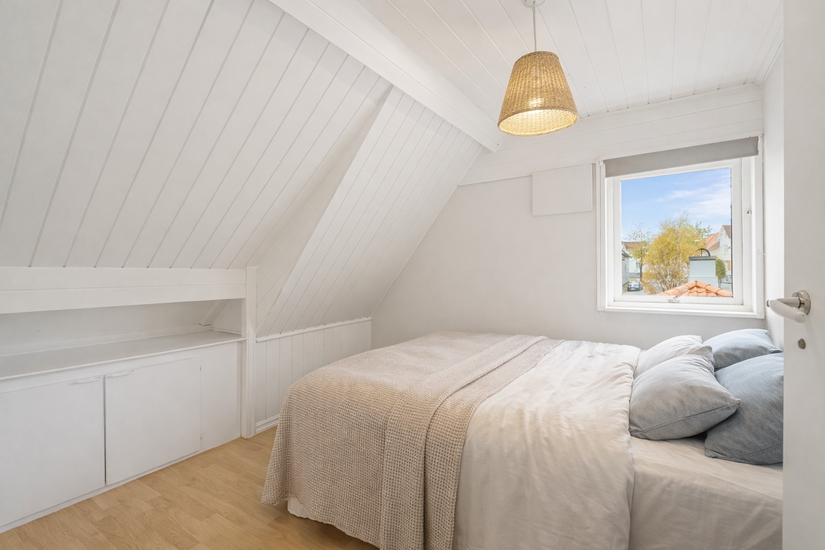• Totalt 4 soverom i en leilighet på 95 kvadratmeter, i tomannsbolig over 2. etasje og loft.