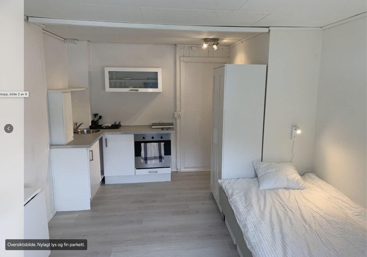 Hybelen er nyoppusset for noen år siden, med ny parkett og nytt listverk samt alle vegger er nymalt.