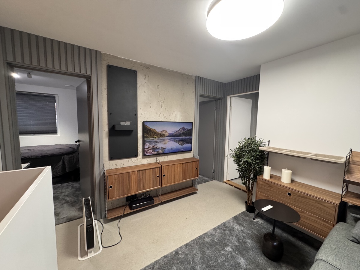 Varme i gulv på bad og stue. The frame tv, tenderflame peis, helt nye hvitevarer.