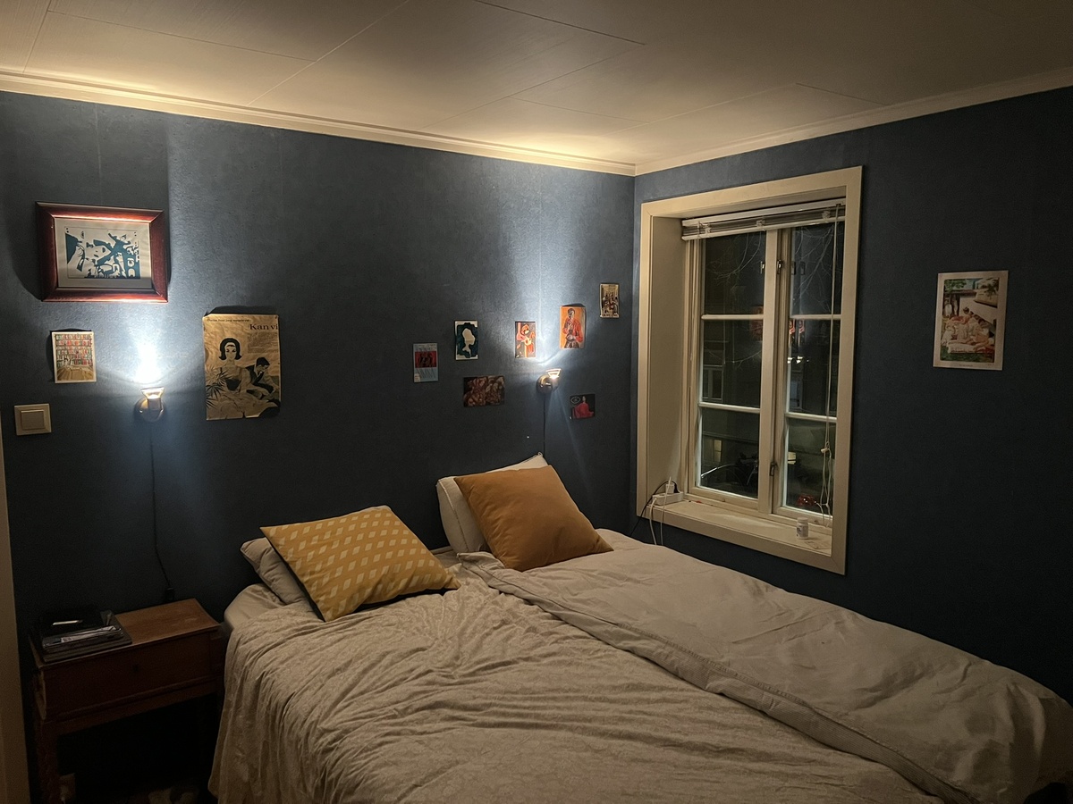 Koslig soverom leies ut i Februar med seng og skrivebord i et stort hus på 120 kvm.