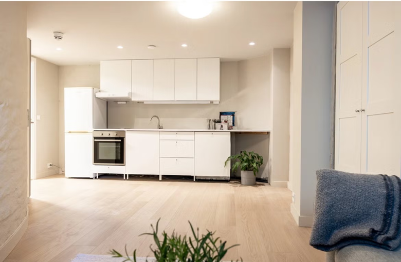 Vi leier ut en ettroms hybel på ca. 25 kvm på Briskeby i Oslo. Hybelen har egen inngang fra hovedtrappeoppgangen (sokkel/underetasje) og er helt privat. Den holder gjennomgående høy standard med vannbåren gulvvarme i alle rom, parkett, moderne kjøkken med alle hvitevarer inkludert, samt et lyst og pent bad. Veggene er malt i lyse farger, og vinduet vender mot en rolig bakgård med grøntarealer. Det er ekstra garderobeplass i vindfang og et stort garderobeskap i hovedrommet.