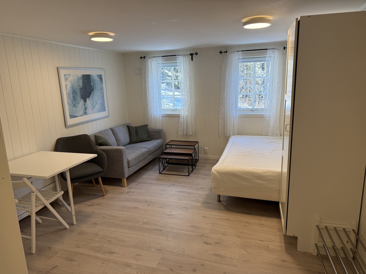 Nylig oppusset (2023), lys og trivelig hybelleilighet i skogkanten