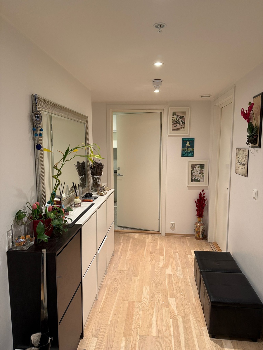 Studio is ~22 Sqm, fully furnished, from 2018 with newly built kitchen, flooring and painting (dec 2025) and its own Separate Bathroom with floor heating. The apartment shares a hallway with the owner and separates entry to apartment.(see in pics)
