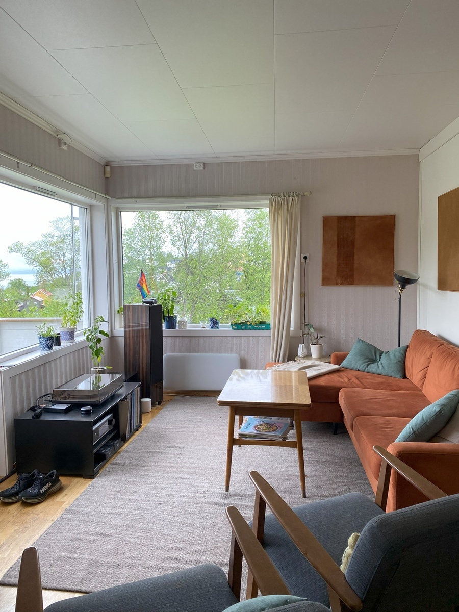Firepersons kollektiv sentralt på Tromsøya leter etter to nye samboere fra juli og august av. Stort funkishus fra 40-tallet. Gammel standard, men høy sjarmfaktor. Fellesarealene består av ett toalett, kjøkken, en stor stue med tilhørende spisestue, ett bad, og en rekke oppbevaringsboder. Hagen er stor og krever litt klipping på sommeren, noe vi alle bidrar til! Det er plass til tre biler i oppkjørselen, i tillegg til at vi disponerer en liten garasje. I hagen er det etablert grønnsakshage og bærbusker for de som vil utvikle sine grønne fingre!