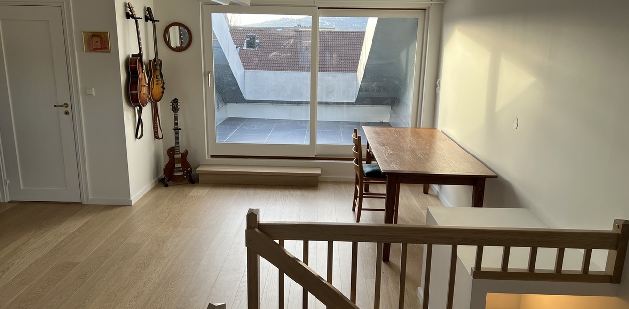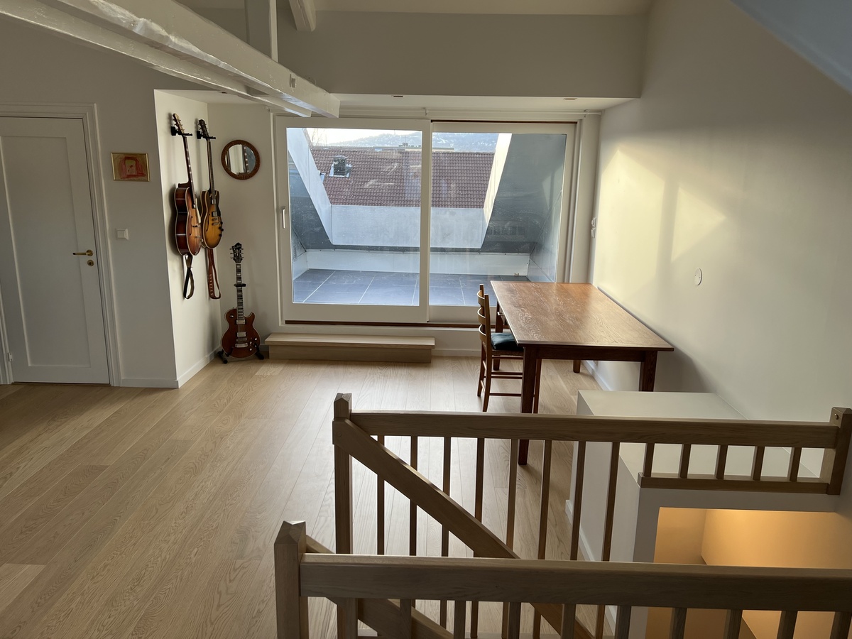 Leiligheten ble pusset opp i 2022/2023; alle overflater helsparklet og malt, nytt gulv på kjøkken og stue, ny trapp og nye fliser på terrasse. Noen møbler kan være tilgjengelig om leietaker ønsker. Sofaen på bildene fra stua inngår ikke. Leiligheten kan også leies ut umøblert. Leiligheten har to soverom på første plan, samt stort spisekjøkken og bad. I dag brukes andre plan som stue, men det kan også fungere som soverom dersom man er tre leietakere.