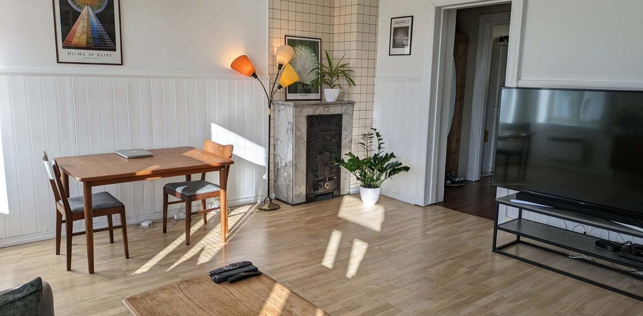 Har to snille og sosiale hunder på deltid og glad i planter og vintage møbler! Er også gjerne sosial med venner over på middag, brettspill og annet om man vil bruke fellesarealene til sånt! God plass på rommene til å trekke seg tilbake.