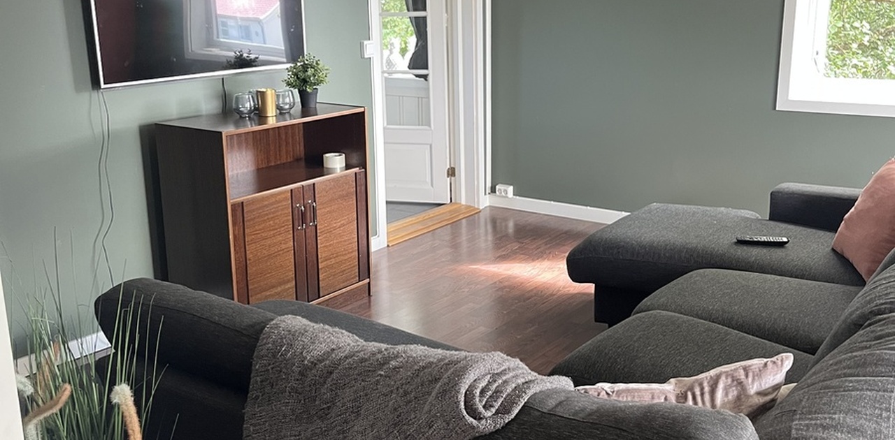 🛋️Fellesarealene er møblert og har det meste som trengs. Stuen kommer med spisebord, sofa, tv, tv benk, diverse skap og hyller etc… Stuen har flere, store vinduer så om sommeren er det rikelig med sollys fra morgen til kveld.