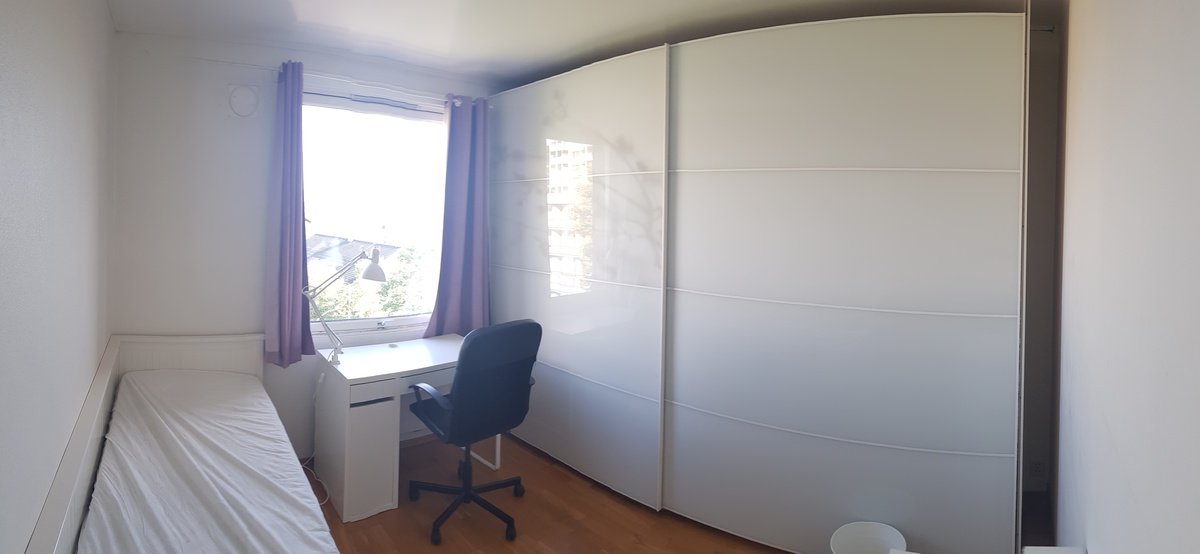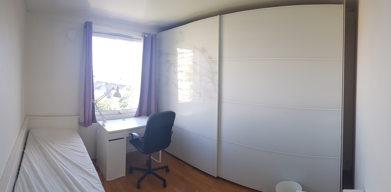Hybel til leie – lys, sentral og med utsikt - Nydalen BI, Uio. Mye skapplass, en hel vegg