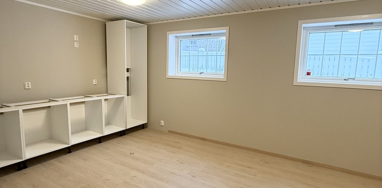 Leiligheten er ledig for leie så snart kjøkken er ferdig montert, ca. månedsskifte januar/februar. Det gjenstår fremdeles noe oppussing, og nye bilder blir lagt ut når leiligheten er ferdig pusset opp.